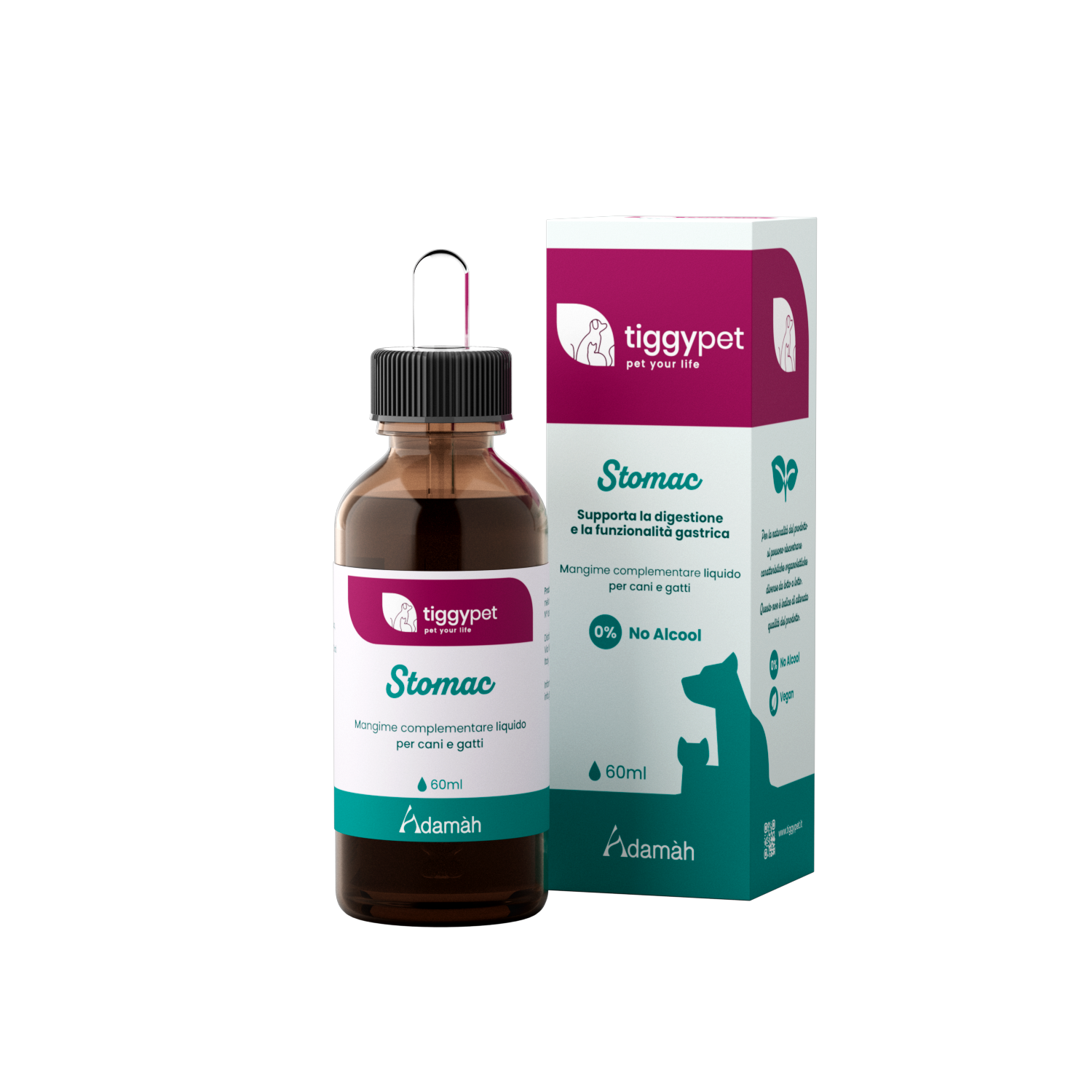 Mangime complementare liquido per cani e gatti Il prodotto contiene ingredienti utili a supportare i processi digestivi sostenendo la fisiologica funzionalità gastrica. FORMATO Flacone contagocce 60ml.